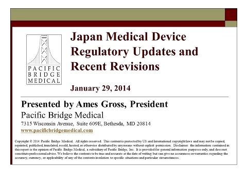To view the webcast presentation slides in PDF format, please click on Japan Medical Device Regulations Updates 2014 Webcast Slides.